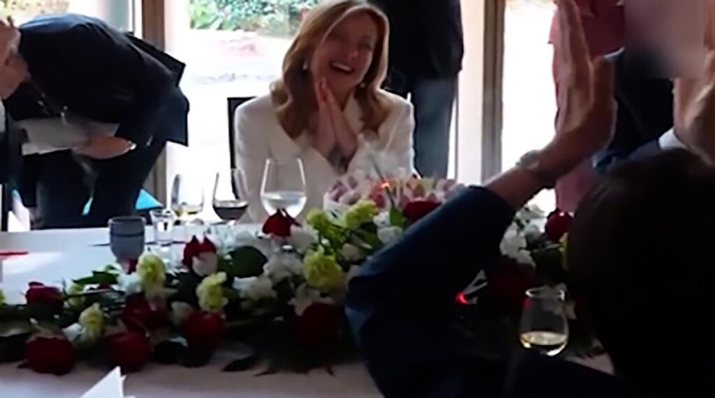 در پایان ناهار رسمیِ سانائه تاکائیچی و جورجیا ملونی در توکیو، کیک تولدی با شمعهای روشن به سالن آورده شد و اعضای هیئت ژاپنی ترانه «تولدت مبارک» را به زبان ایتالیایی برای ملونی خواندند. نخست وزیر ایتالیا تولد 49 سالگی را با غافلگیری شیرین در توکیو جشن گرفت.