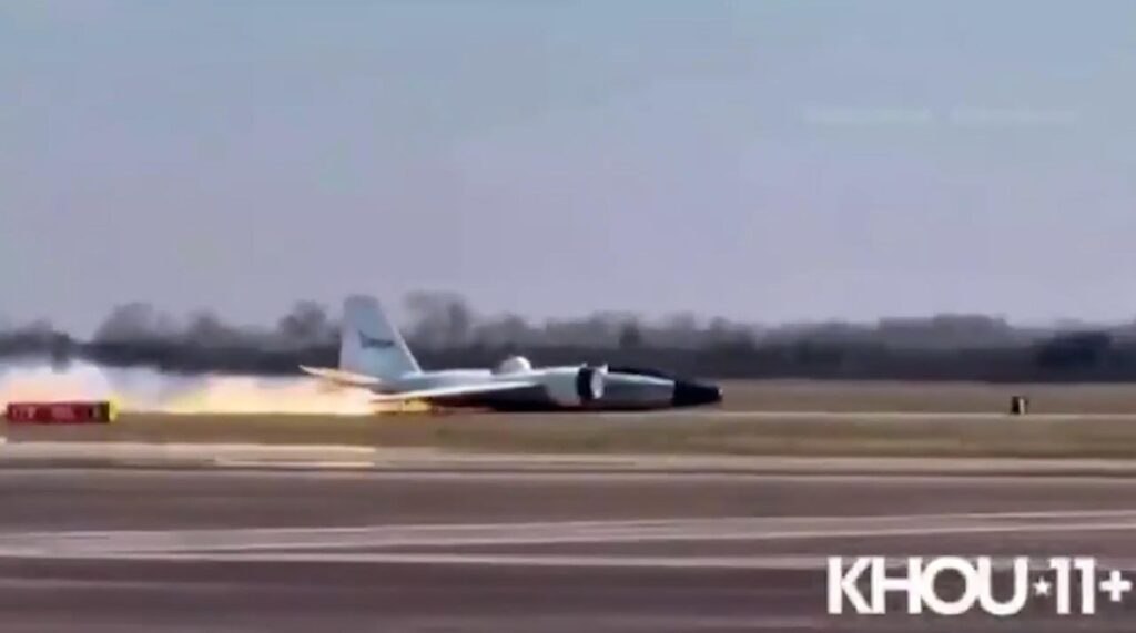 هواپیمای ناسا هنگام فرود اضطراری در شهر هوستون، با شکم خود روی باند فرودگاه نشست چرخهای فرود از کار افتادند، اما علت آن مشخص نیست. دو نفر در هواپیما بودند و هیچ آسیبی گزارش نشده است. این لحظات را میبینید.